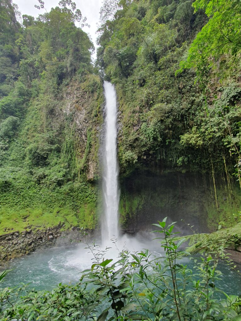 Der Weg zur Catarata Río Fortuna war abenteuerlich: rutschige Pfade, eine kleine Flussquerung und irgendwann ein Loch im Zaun, das uns schließlich den Weg freigab zu einem atemberaubenden Blick auf den Wasserfall. Das Wasser stürzte tosend in die Tiefe, umgeben von sattgrünem Dschungel – ein Moment, der sich tief einprägt. Als Bonus entdeckten wir sogar einen Tukan, der ruhig zwischen den Bäumen saß, als wäre er Teil einer Kulisse.