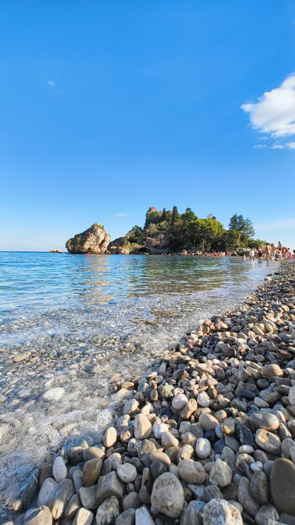 Zurück unten in Taormina lassen wir Kultur Kultur sein (völlig überlaufen!), schnappen uns die Badesachen und springen ins Mittelmeer. Der kleine Strandabschnitt bei der Isola Bella ist zwar gut besucht, aber das Wasser glasklar. Wir treiben, schnorcheln, schwimmen – und lassen es uns einfach gut gehen.